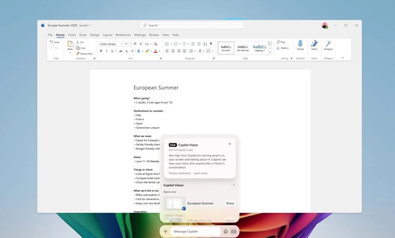 قابلیت‌های آزمایشی جدید Copilot Vision