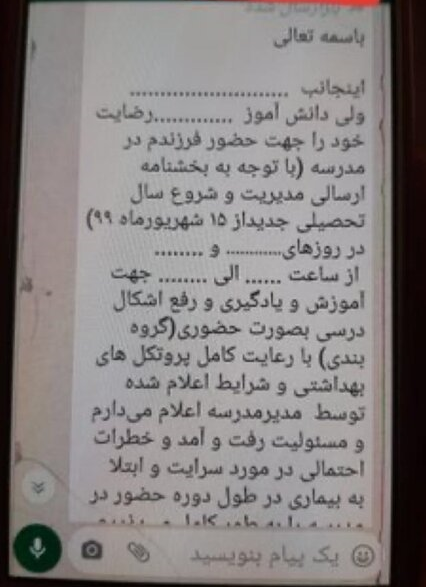 حالا دیروز وزیر آموزش و پرورش در خصوص برگه تعهد حضور دانشآموزان در مدرسه و موضوع بیمه مسؤولیت مدنی، گفت: «قطعا درست نیست. اینها فضاسازیهای رسانهای است و در فضای مجازی، کارهای جعلی انجام می شود. این موضوع که دانشآموزان با خانواده به مدرسه بیایند یا تضمین دهند را ما اعلام نکردیم».