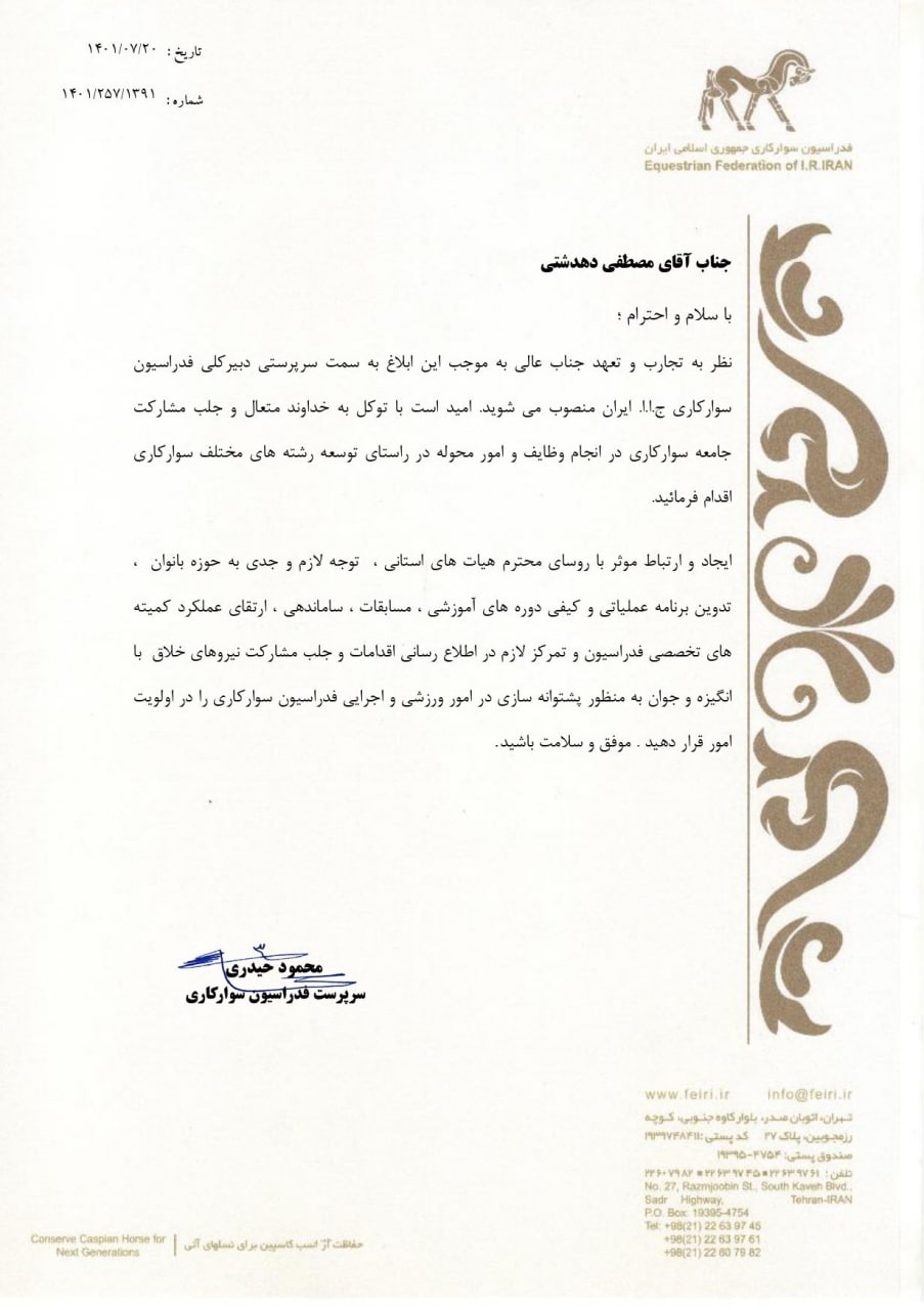 سرپرست دبیری فدراسیون سوارکاری منصوب شد.
