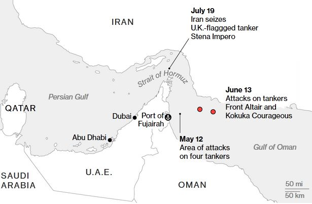 - Tankers were attacked in and around the Strait of Hormuz in 2019 in May, June and July.
