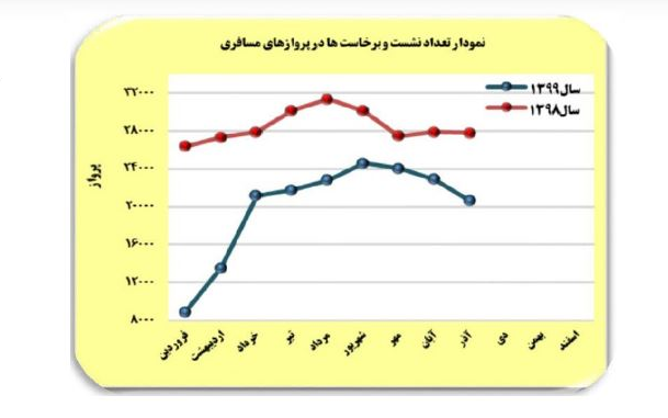 در مقایسه با ماه مشابه سال گذشته باید گفت با کاهش 50 درصدی پروازهای عبوری مواجه بودیم، در آذر 98 تعداد 25 هزار و 155 پرواز عبوری از فضای کشور انجام شد.