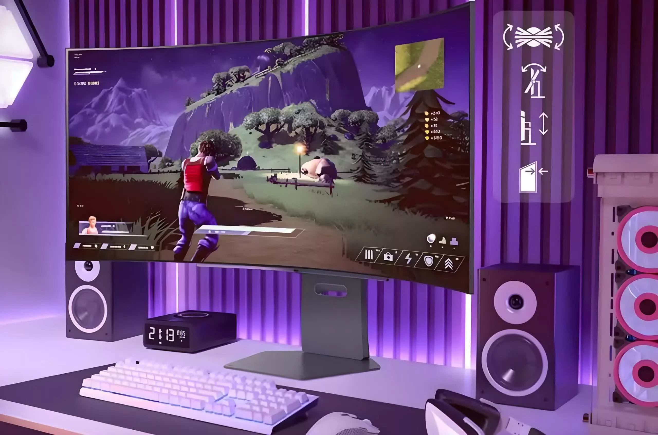 علاوهبراین، پشتیبانی از تکنولوژیهای AMD FreeSync Premium و Nvidia G-Sync به همگامسازی بهتر نرخ فریم و بهبود تجربه بازی در حین نمایش حرکات سریع کمک میکند. همچنین این مانیتور ازعمق رنگ 10 بیت و پوشش رنگی 98.5 درصد DCI-P3 برخوردار است که رنگها را دقیق و زنده نمایش میدهد.