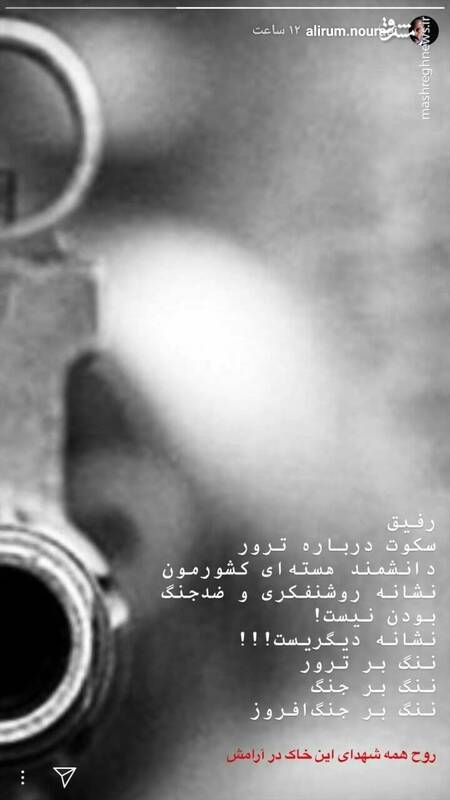 به گزارش مشرق، علیرام نورایی، بازیگر در انتقاد از سلبریتی ها نسبت به سکوت در برابر ترور شهید فخریزاده در صفحه اینستاگرام خود نوشت: