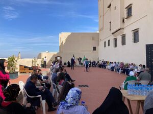 آنگاه حاضران برای بازدید از نمایشگاه دعوت شدند و علاوه بر دیدن تابلوها از نمونه های صنایع دستی و آثار حجمی هنر ایرانی نیز بازدید کردند. بروشوری هم به مناسبت نمایشگاه توزیع گردید که در آن عمر خیام و نمونه ای از شعر او به زبانهای فرانسوی و عربی و انگلیسی معرفی شده بود.
