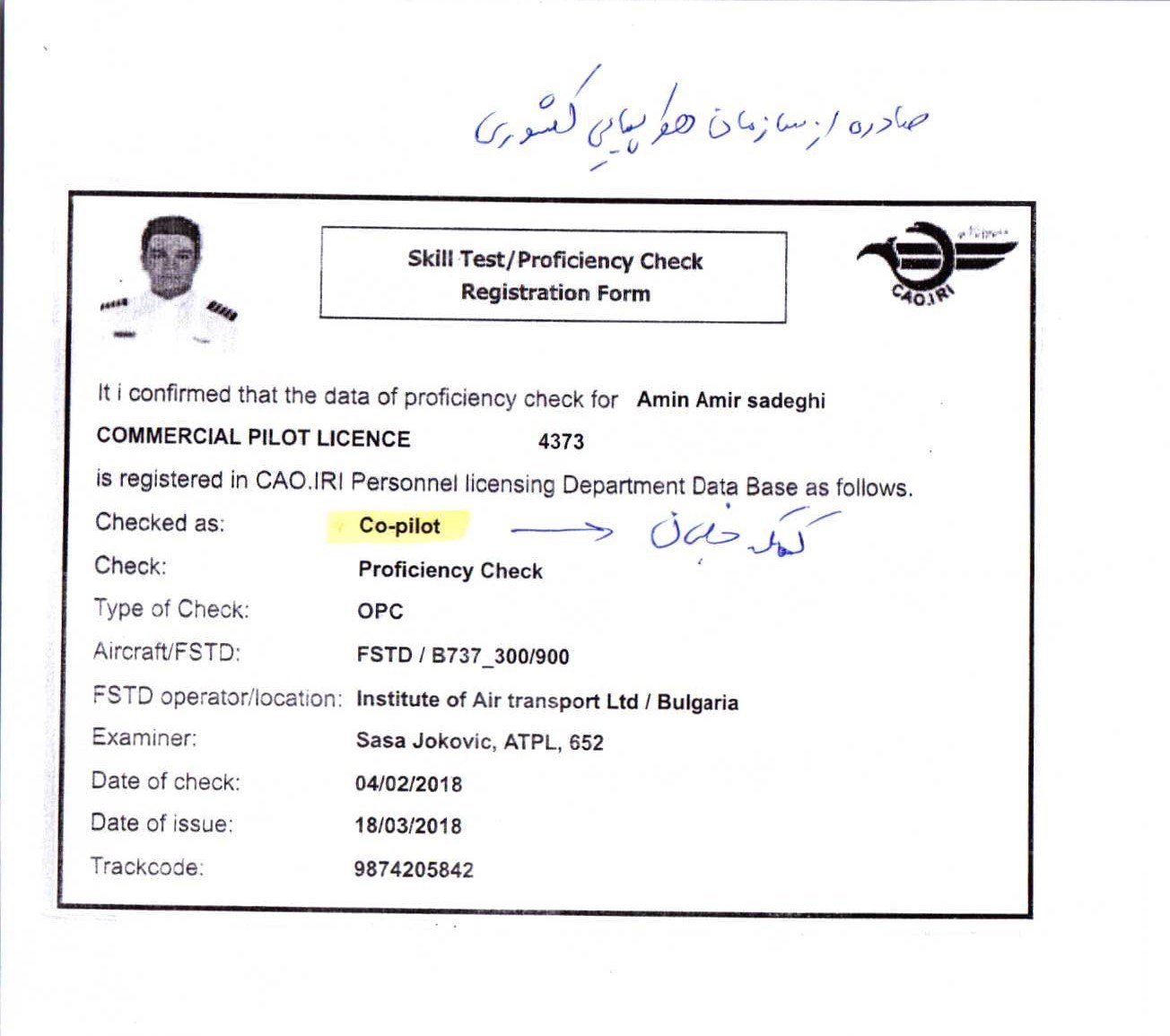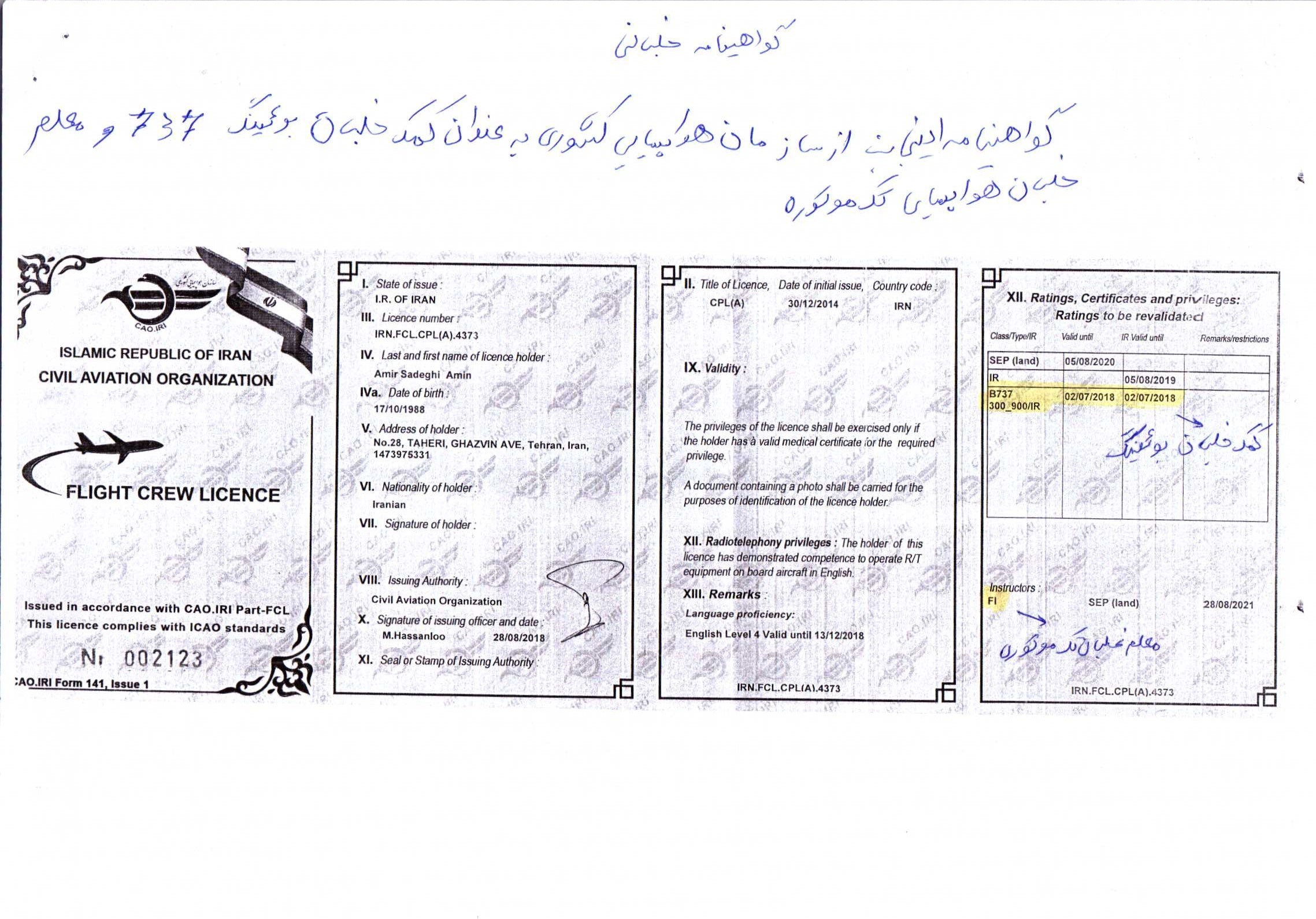 وی گفته بود: من به عنوان کمکخلبان در این شرکت خدمت میکردم و کارآموز نبوده ام و در این باره مدارکی هم منتشر کرد که در پایین قابل مشاهده است.