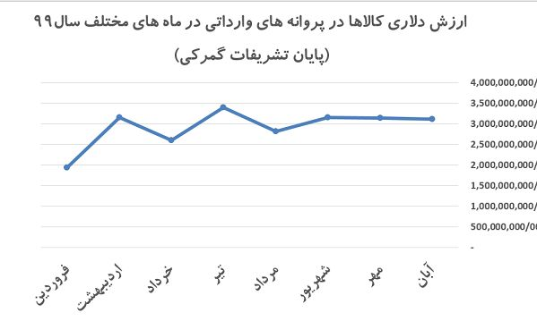 کارشناس ارشد حوزه ارزی بانک مرکزی با بیان اینکه از 8 میلیارد دلار ارز مصوبی که قرار بوده در سال 99 به کالای اساسی تعلق بگیرد، تاکنون 7 میلیارد دلار آن از سمت بانک مرکزی تخصیص داده شده است، تصریح کرد: از 12 آبان ماه امسال با مصوبه تأمین ارز توسط ارز اشخاص، به نوعی فرآیند کدرهگیری ملغی شد، اما با این وجود آمارهای گمرکی به ما نشان می‌دهد که در آبان ماه میزان ارزش دلاری پروانه‌های گمرکی نسبت مهرماه و شهریورماه تغییری خاصی پیدا نکرده است