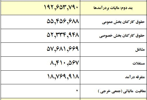 در این مدت کارکنان بخش خصوصی 5233 میلیارد تومان و بخش عمومی 5545 میلیارد تومان مالیات حقوق دادهاند.