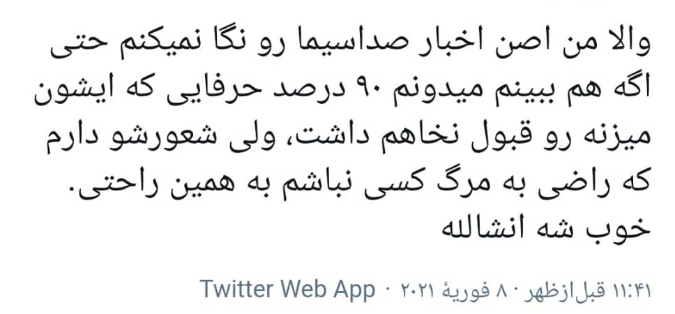 شادمانی میچکید از کلماتشان وقتی از آرزوی مرگ مینوشتند برای جوان خبرنگار و وعده شیرینی میدادند برای روز برآوردهشدن آرزوی سیاهشان! و یادشان رفتهبود چقدر روی همین دیوار مجازی قلمفرسایی کردهبودند در نقد شعار مرگ بر آمریکا و مرگ بر اسراییل و ربط دادن سیل و زلزله و هر حادثه طبیعی و غیرطبیعی به آن. حالا بیپرده و لبخندبرلب طلب مرگ میکردند، نه برای قاتل کودکان و زنان بیگناه، نه برای متجاوزی که جز جنگ و ویرانی و کشتار در کارنامه ندارد، بلکه برای انسانی از میان خودشان.