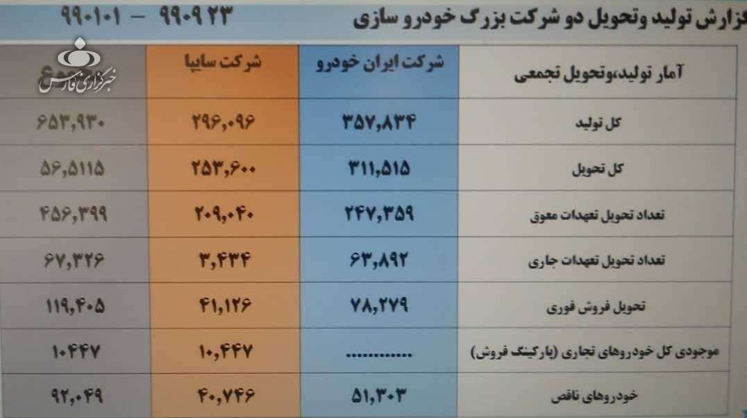 به گزارش خبرنگار اقتصادی خبرگزاری فارس، از ابتدای امسال تا 23 آذرماه ایران خودرو و سایپا 653 هزار و 930 دستگاه خودرو تولید کرده اند و میزان تحویل خودرو توسط این دو گروه خودروساز 565 هزار و 511 دستگاه بوده است که 456 هزار و 399 دستگاه مربوط به تحویل تعهدات معوق بوده و 67 هزار و 326 دستگاه نیز مربوط به تحویل تعهدات جاری خودروسازان بوده است.