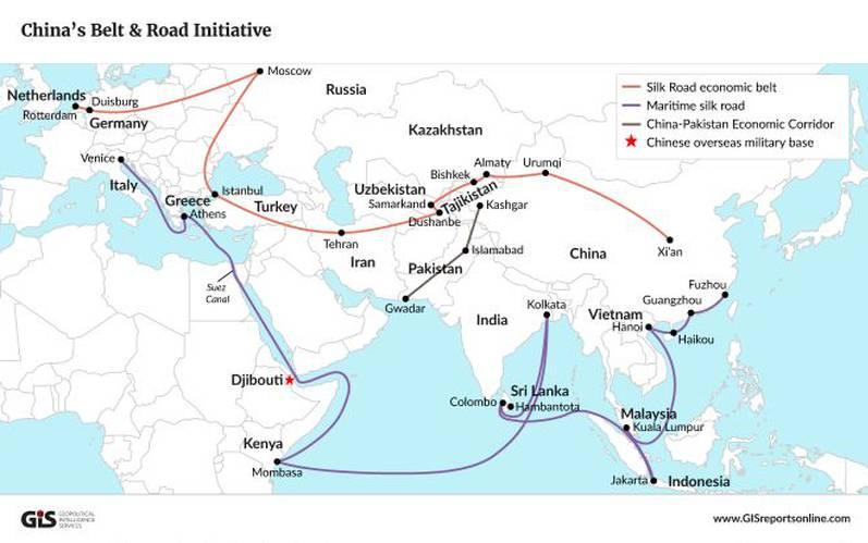 طرح یک کمربند یک جاده [Map of China's Belt & Road initiative]