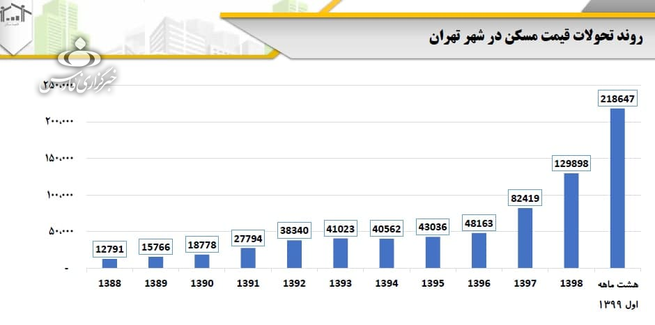این درحالیاست که متوسط قیمت هر متر مربع واحد مسکونی در سال 1389 برابر 1 میلیون 576 هزار تومان بوده است. این یعنی قیمت مسکن تهران در بازه 10 سال با رشد نجومی 1300 درصدی مواجه شده است.