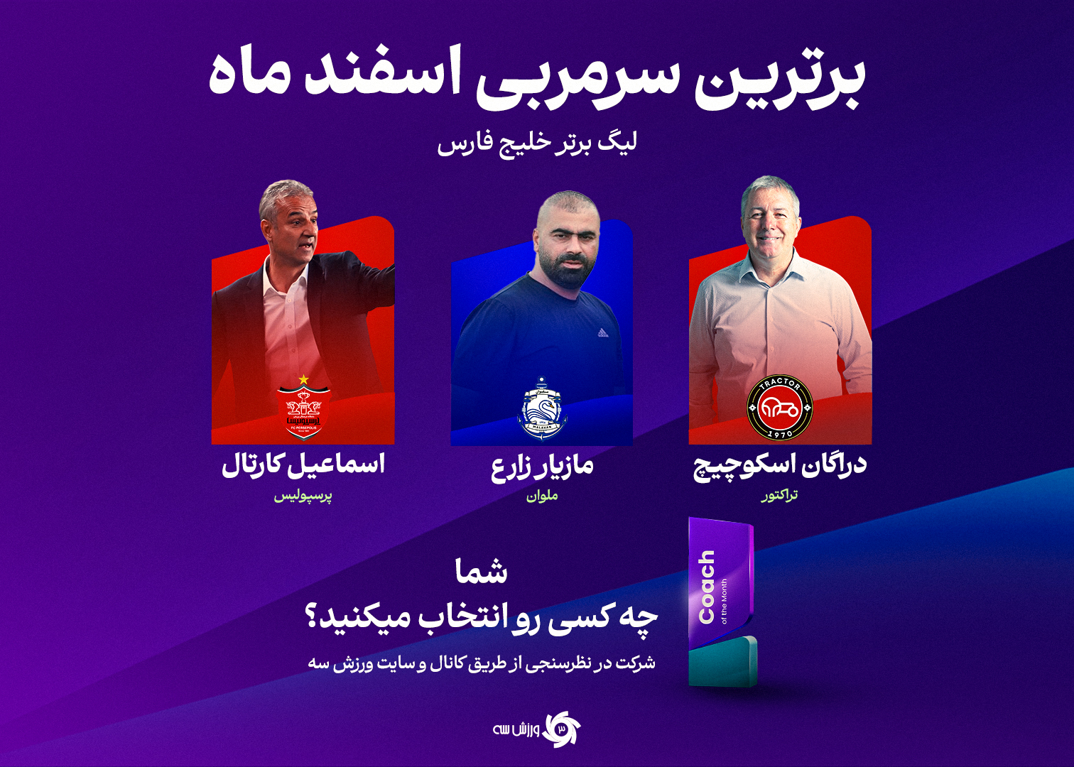 استارت مرد کروات در کنار زمین ورزشگاه یادگار امام بعد از سوت پایان بازی آخر سال و پیروزی دو بر یک تیمش مقابل گل گهر، آخرین سکانس او در سال 1403 را خلق کرد. اسکوچیچ که تیمش را در قامت مدعی قهرمانی قرار داده، جدیتر از هر زمانی دیگری این هدف را دنبال میکند. تیم تحت هدایت او در اسفند ماه سه بازی لیگ برتری انجام داد که نتیجه آن به صدرنشینی ختم شد. پیروزی مقابل خیبر خرم آباد و گل گهر سیرجان و توقف مقابل سپاهان، حاصل کار تراکتوریها بود. شاگردان اسکو در این ماه، دو بازی هم در مرحله یکچهارم نهایی لیگ قهرمانان آسیا مقابل التعاون انجام دادند که با حذف در ضربات پنالتی همراه شد. هر چند معیار و ملاک این نظرسنجی فقط و فقط نتایج بازیهای داخلی است.