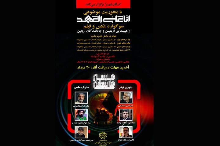 به گزارش گروه فرهنگی خبرگزاری دانشجو، معاونت امور اجتماعی و فرهنگی شهرداری تهران، در راستای عمل به میثاق خدمت و با هدف مستندسازی هنرمندانه این جوشش عظیم، نخستین دوره سوگواره عکس و فیلم نگار شهر با عنوان «مسیر عاشقی» را برای ثبت حرکت عظیم فرهنگی و راهپیمایی اربعین و جاماندگان اربعین برگزار میکند.