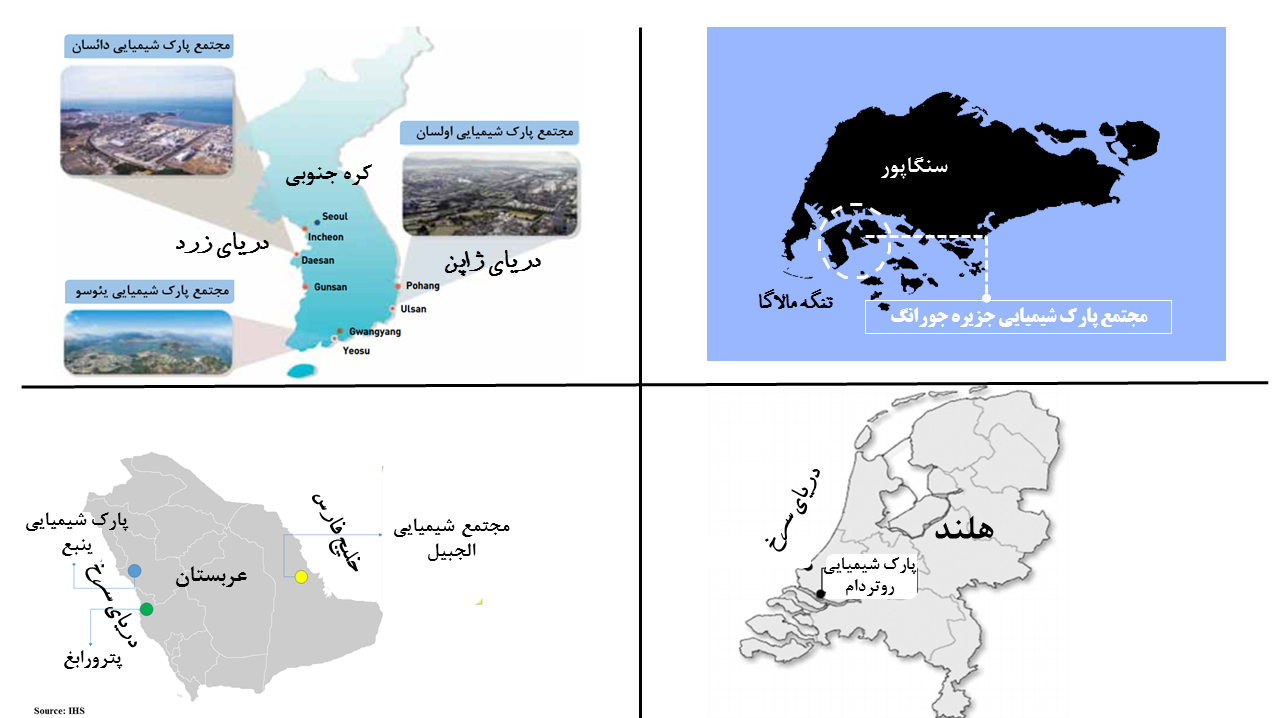 تصویر 1- جانمایی قطبهای موفق پتروشیمی دنیا در سواحل