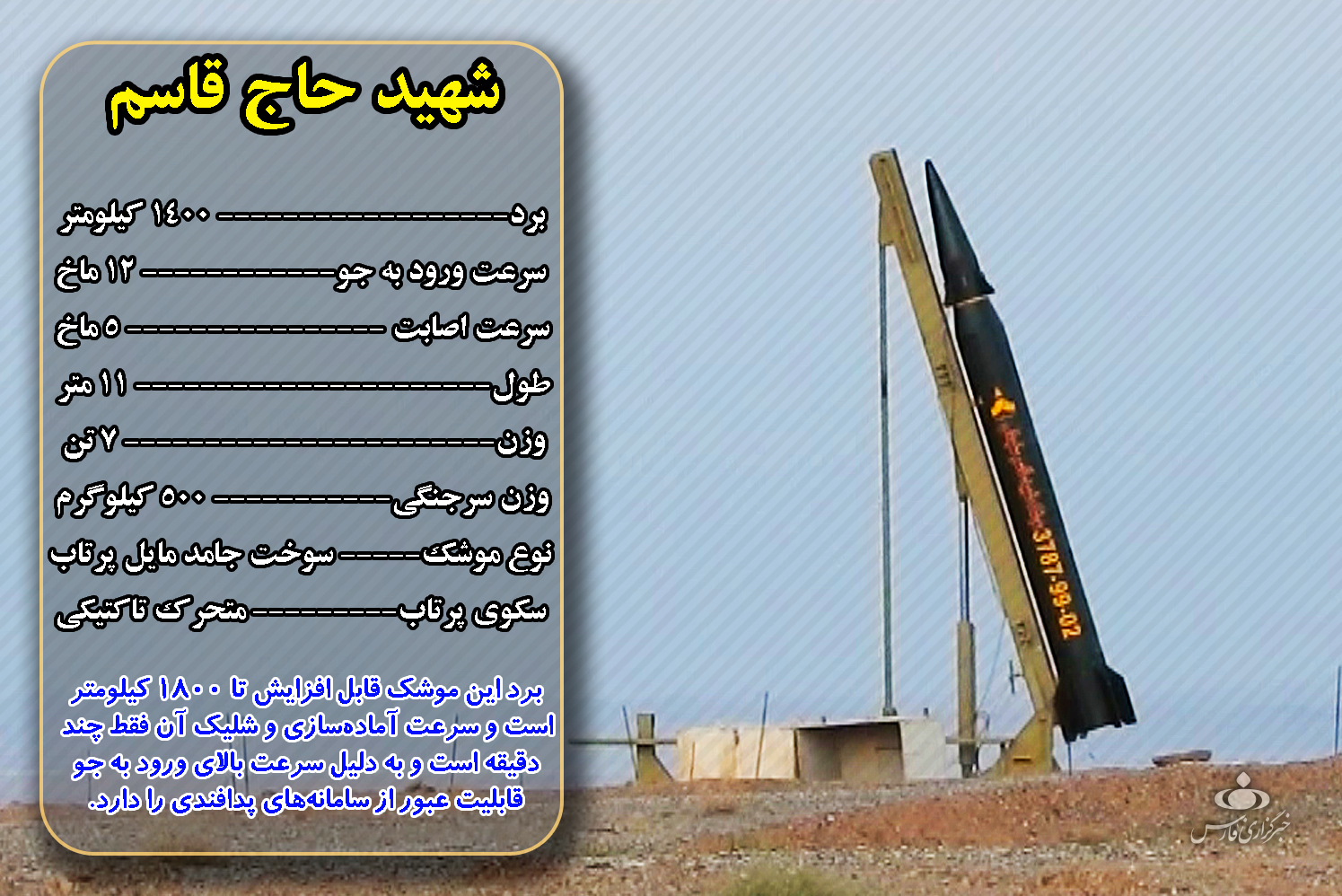 موشک «شهید حاج قاسم» با برد ۱۴۰۰ کیلومتر را میتوان دوربردترین موشک بالستیک تاکتیکی جهان برشمرد، رکوردی که پیش از این نیز با ساخت موشک دزفول در اختیار جمهوری اسلامی ایران قرار داشت.