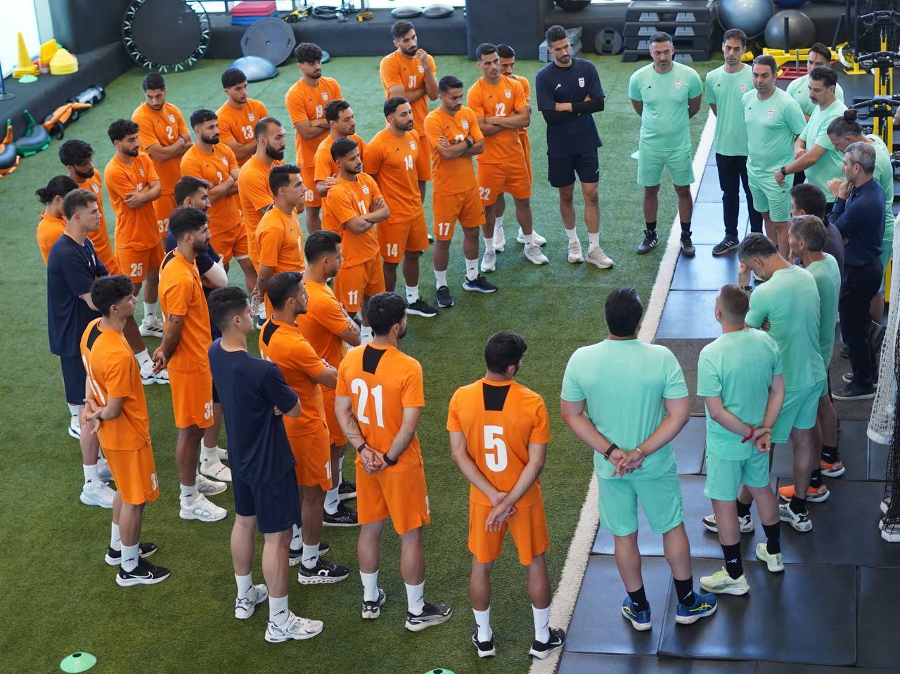 پیش از آغاز تمرین، امیر قلعه‌نویی سرمربی تیم ملی، با خوش‌آمدگویی به بازیکنان، صحبت‌های انگیزشی و فنی خود را مطرح کرد. او با اشاره به اهمیت بهره‌برداری حداکثری از فرصت‌ها، به ویژه برای بازیکنان جوان، تأکید کرد: «آینده از آنِ جوانان است؛ قدر این فرصت‌ها را بدانید.»