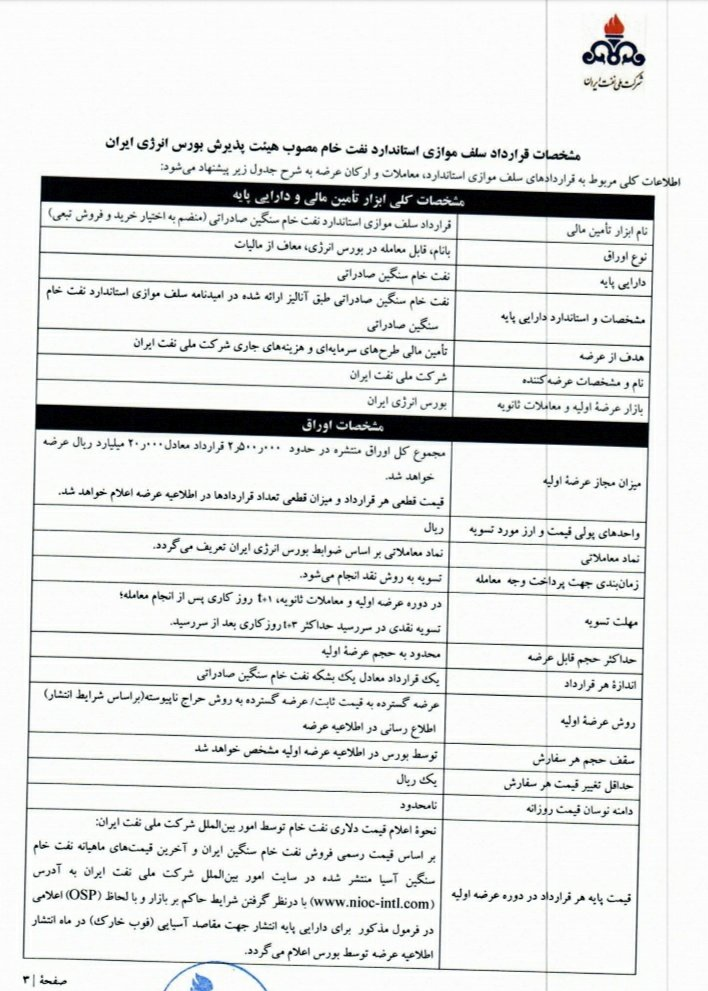 به گزارش فارس، امیدنامه شرکت نفت درباره فروش اوراق سلف نفتی در بخش زیر آمده است: