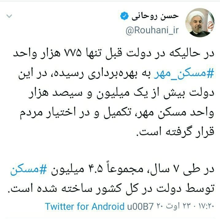 ساعاتی بعد از برگزاری این جلسه، این ادعاهای عجیب رئیس جمهور درباره وضعیت بخش مسکن و طرح مسکن مهر در توییتر هم منتشر شد که واکنش های گسترده ای در فضای مجازی داشت.