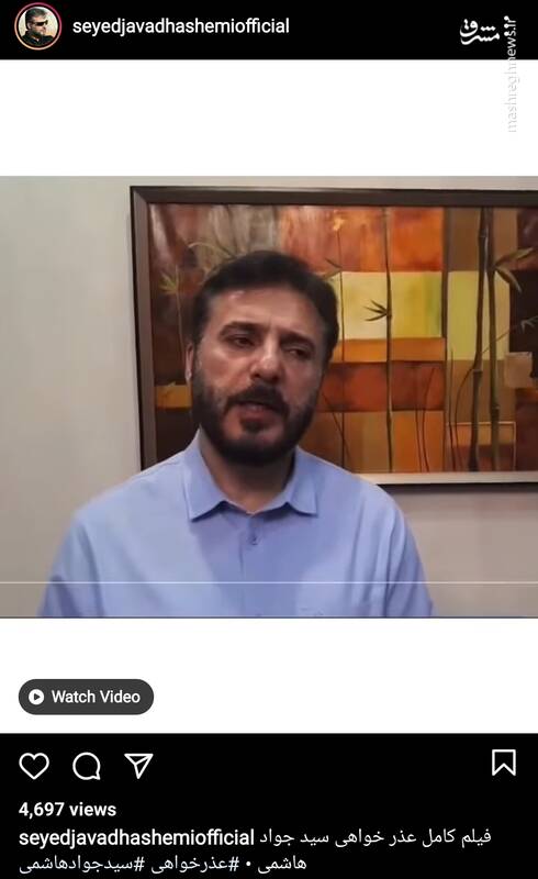 بنا بر این گزارش، هاشمی با انتشار ویدئویی در صفحه اینستاگرام خود گفت: من بابت عذرخواهی از ملتی که خیلی چیزها برای آنها مهم است آمده ام، متاسفانه بابت این تبلیغ تحقیقی نکرده بودم با عجله و به توصیه دوستانم متنی را گفتم که با اعتقادات و رفتار خود من هم مغایرت داشت، بابت این اشتباه عذرخواهی میکنم.