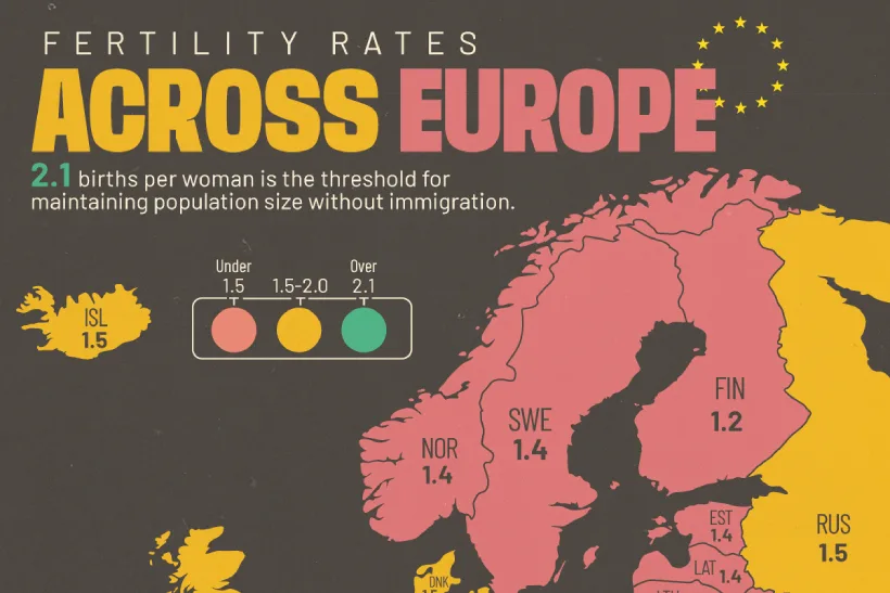 نرخ باروری کشورهای اروپایی در سال ۲۰۲۵ + نقشه