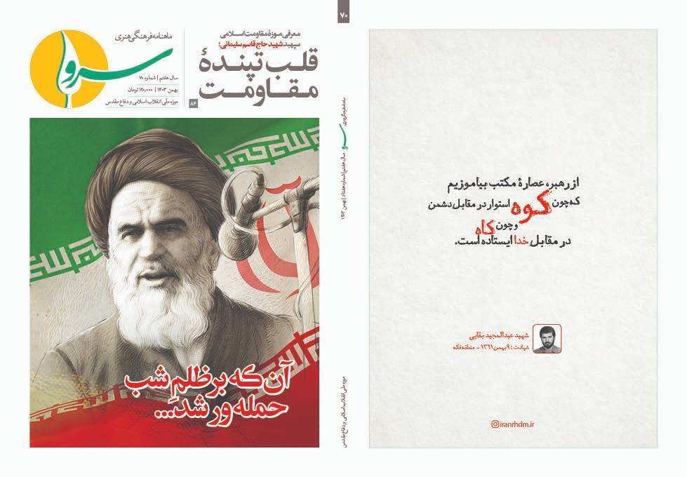 گفتنی است نشریه سرو به سردبیری «داوود عامری» در ۱۲۰صفحه، از سوی موزه ملی انقلاب اسلامی و دفاع مقدس چاپ و منتشر میشود.