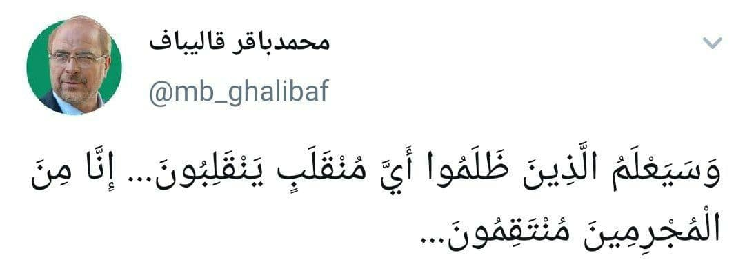 به گزارش خبرگزاری فارس، محمدباقر قالیباف رئیس مجلس شورای اسلامی در صفحه شخصی خود در توییتر به ترور منجر به شهادت محسن فخری زاده دانشمند هسته‌ای کشورمان واکنش نشان داد.