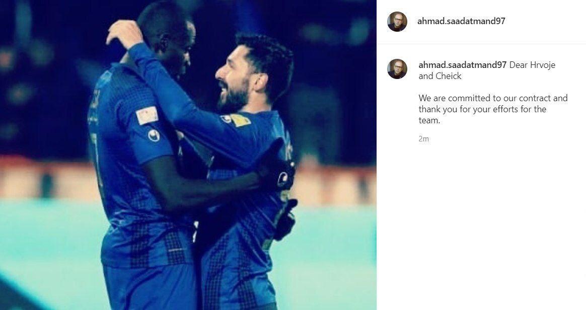بر این اساس احمد سعادتمند هم در صفحه شخصیاش واکنش نشان داد و گفت که نسبت به تعهداتشان به این دو بازیکن پایبند بوده و از تلاشهایشان نیز تشکر کرد.