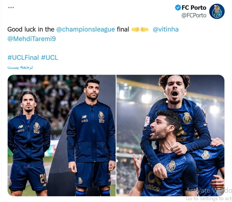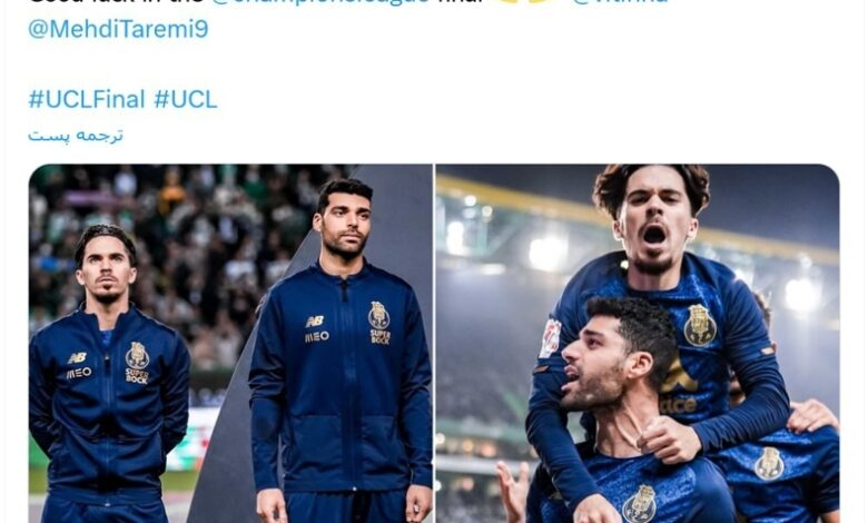 به گزارش گروه ورزشی خبرگزاری دانشجو، باشگاه پورتو با انتشار تصویری از مهدی طارمی و ویتینا برای آنها نوشته «موفق باشید» تا این چنین برای دو ستاره سابق خود در ترکیب دو تیم فینالیست اروپا آرزوی درخشش کند.