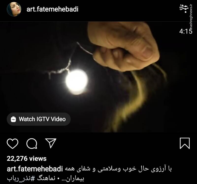 به گزارش مشرق، فاطمه عبادی، نقاش در صفحه اینستاگرام خود نماهنگ «نذر رباب» را با آرزوی حال خوب وسلامتی و شفای همه بیماران منتشر کرد.