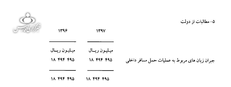 مطالبات هما از دولت در سال 97 رقم 1849 میلیارد و 449 میلیون و 500 هزار تومان بوده است که جبران زیانهای مربوط به عملیات حمل مسافر داخلی است، این رقم در سال 96 نیز همین عدد بوده است.