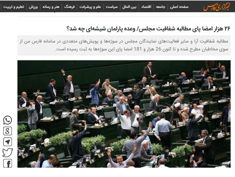 خبرگزاری فارس در 13 مهر ماه سال جاری گزارشی از مطالبه شفافیت آرا و سایر فعالیت نمایندگان مجلس از سوی کاربران فارس من نوشت که بر اساس این گزارش ۲۶ هزار نفر سوژه ها و کمپین هایی که به این مطالبه مربوط میشد را امضا کرده بودند.