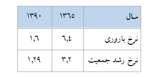 شاید اصطلاح نرخ باروری را شنیده باشید. نرخ باروری به متوسط تعداد نوزادانی میگویند که هر زن در سن باروری (حدود 15-49 سالگی) به دنیا میآورد. براساس آمار، «نرخ باروری» از 6.4 نوزاد به ازای هر زن در سن باروری در سال 1365 به نرخ 1.6 نوزاد در سال 1390 رسیده است. همچنین «نرخ رشد جمعیت» از 3.2 درصد (بدون احتساب آمار مهاجران) در سال 1365 نیز به نرخ 1.29 درصد در سال 1390 رسیده است.