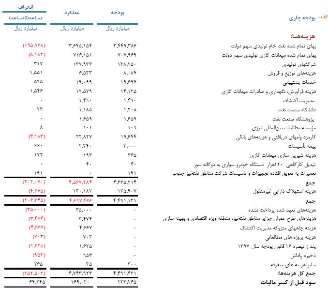 * جزئیات هزینه های شرکت ملی نفت ایران در سال 97