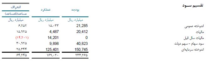 جزئیات تقسیم سود شرکت ملی نفت ایران در سال مذکور در جدول زیر آمده است: