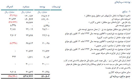 براساس این گزارش، جزئیات بودجه سرمایه ای 53 هزار و 876 میلیارد تومانی شرکت ملی نفت ایران در سال 1397 که شامل منابع و مصارف سرمایه گذاری این شرکت در این سال بوده، مطابق با جدول زیر است: