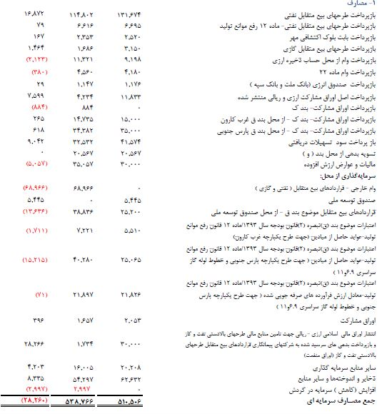 *جزئیات منابع و مصارف سرمایه گذاری شرکت ملی نفت ایران