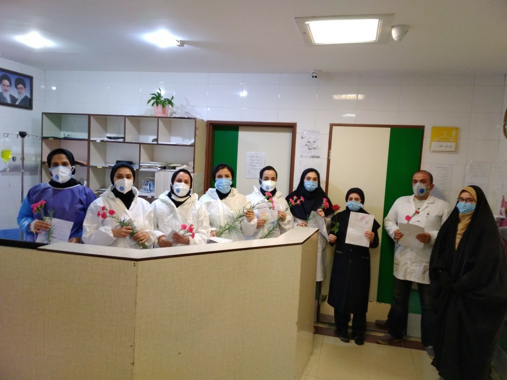 جمعی از دانشآموزان انجمن اسلامی ابرکوه استان یزد هم با حضور در بیمارستان خاتم الانبیاء(ص) این شهرستان از پرستاران و مدافعان سلامت با اهدای گل و شیرینی قدردانی کردند.