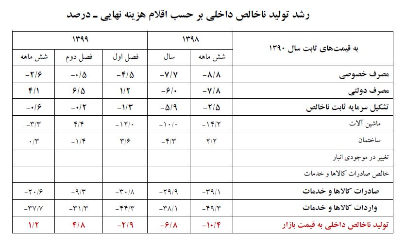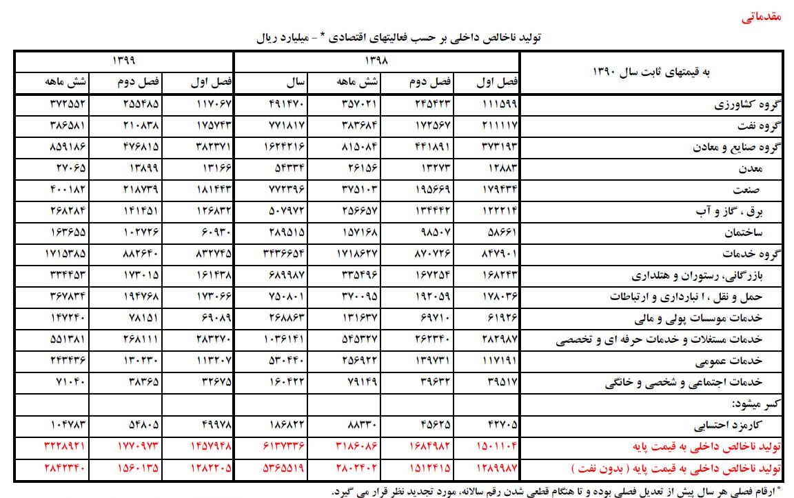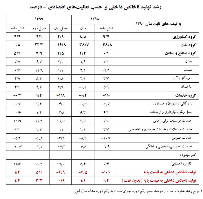 جزئیات رشد 1.3 درصدی اقتصاد ایران در 6 ماهه اول 99